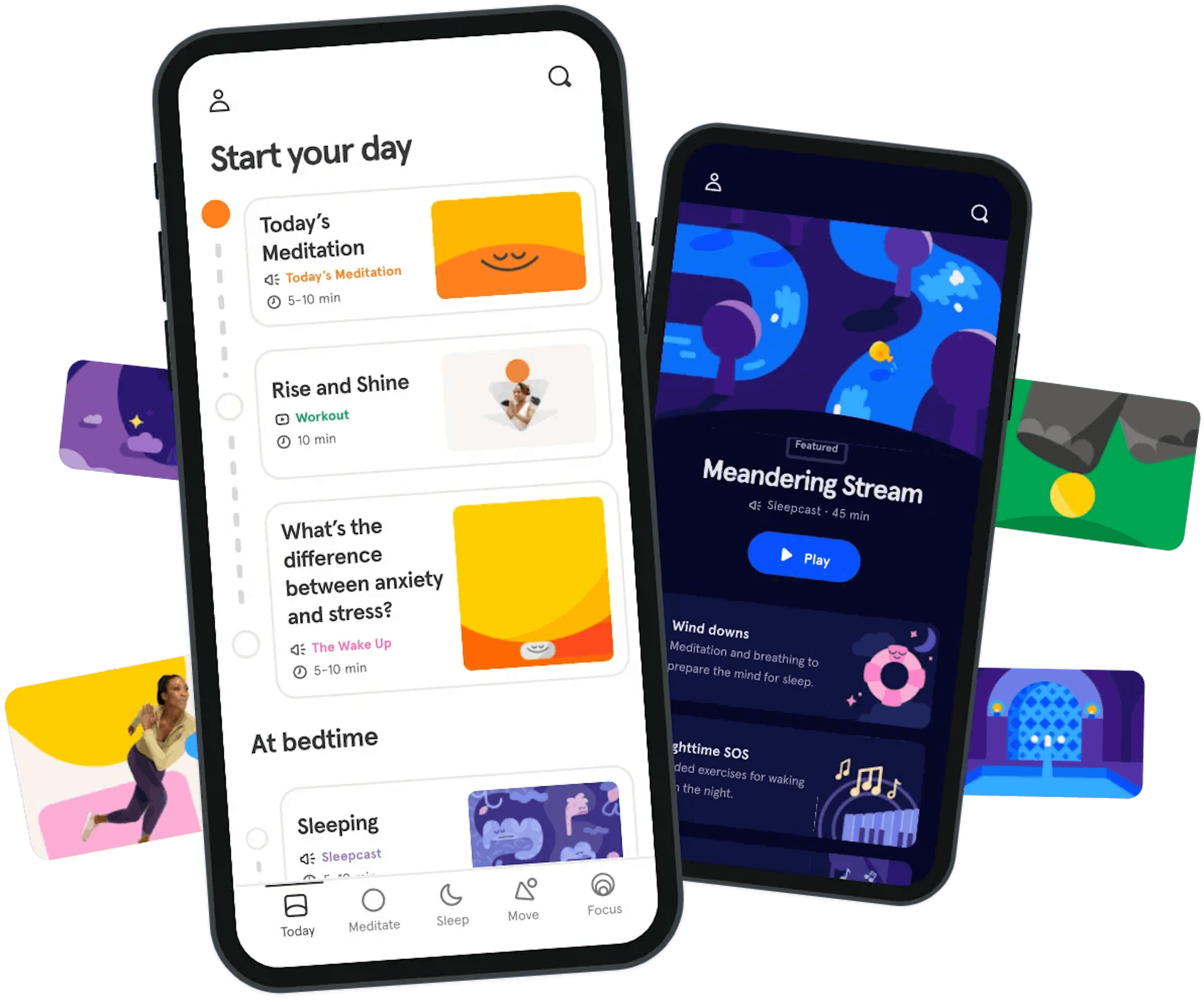 Put your mind to bed with relaxing sleep sounds, dreamy music, and wind-down exercises.