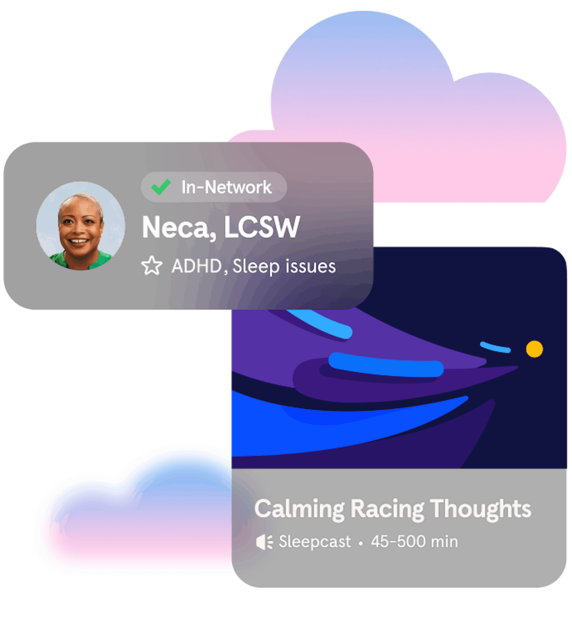Between sessions, you’ll have access to personalized content, meditations, and sleep tools in the Headspace app to support your ongoing progress.*
